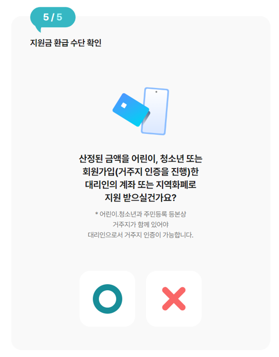- 본인 혹은 대리인 명의의 지역화폐 또는 계좌번호